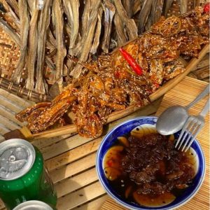 ? Khô cá khoai sate mè làm từ con khô lạc vị ăn chơi chứ không phải khô mặn được sấy giòn rụm và được ram kèm kèm sate và gia vị thấm đậm đà, thêm lớp mè phù bên trên cực kỳ thơm ngon luôn ạ.