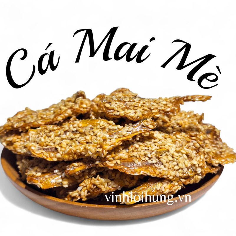 Cá Mai Tẩm Mè Giòn được chế biến từ cá mai tươi, thân mỏng, thịt săn chắc, sau khi làm sạch sẽ được tẩm ướp gia vị vừa miệng và phủ mè rang thơm. Cá được sấy ở nhiệt độ chuẩn giúp thịt cá khô ráo, giòn rụm, không dai cứng, không bở và không tanh.