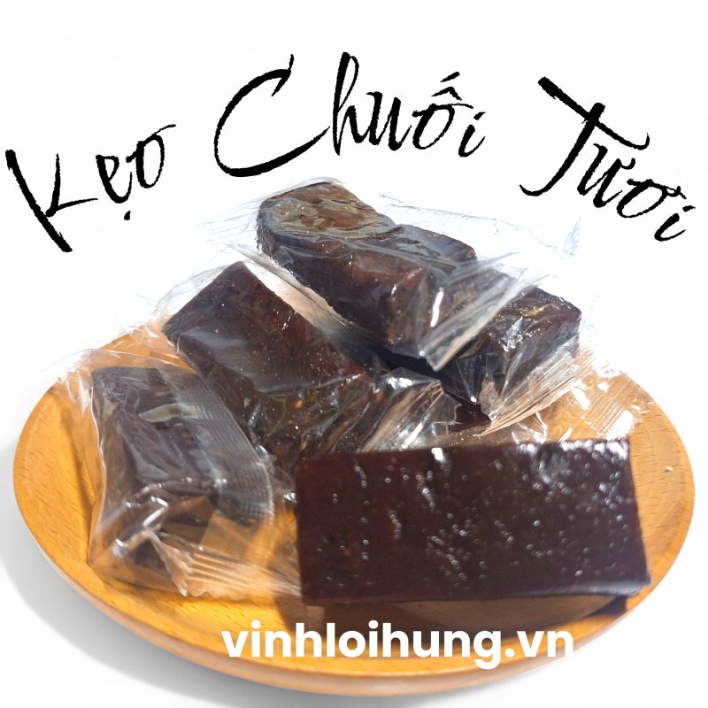 Kẹo chuối tươi là một món đặc sản dân dã, mang hương vị truyền thống đậm đà từ những trái chuối chín cây kết hợp với dừa tươi. Từng viên kẹo dẻo mềm, thơm lừng mùi chuối, vị ngọt dịu tự nhiên.