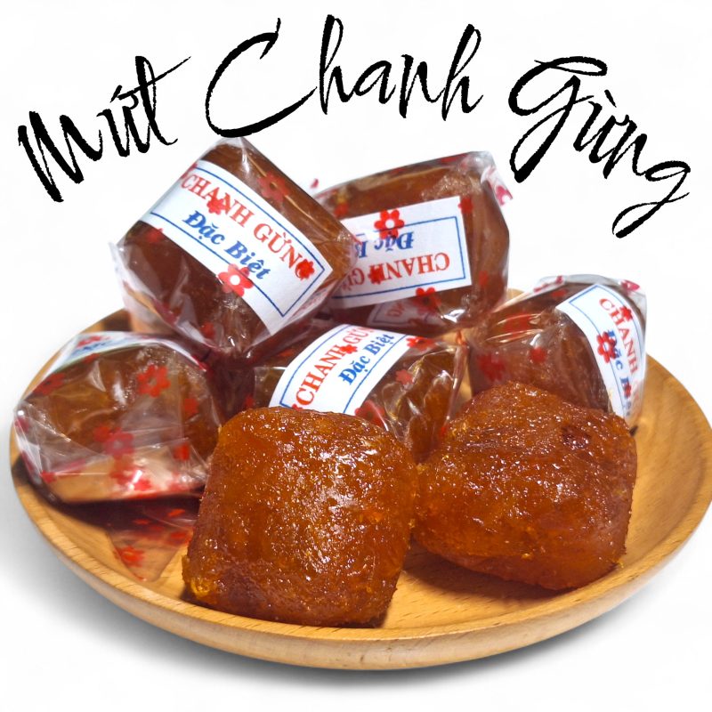 🍋🌿 Mứt Chanh Gừng được làm từ chanh tươi chọn lọc kết hợp gừng già cay ấm, rim đường theo phương pháp truyền thống, cho ra thành phẩm dẻo mềm – chua thanh – cay nhẹ – thơm tự nhiên.